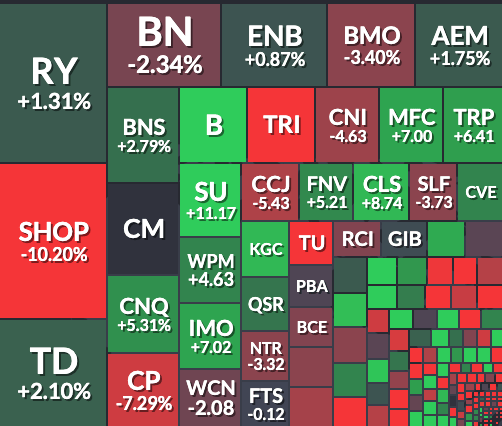 Standouts included SU (+11.17%), MFC (+7.00%), TRP (+6.41%), and CNQ (+5.31%), alongside solid gains in banks like TD (+2.10%) and BNS (+2.79%).